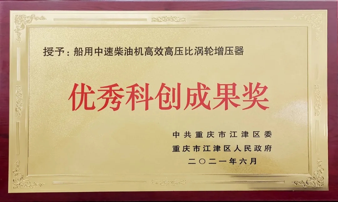 江增重工“船用中速柴油機高效高壓比渦輪增壓器”獲得江津區優秀科創成果獎;技術中心副主任文鑫獲得江津區“科技創新先進個人”榮譽稱號。